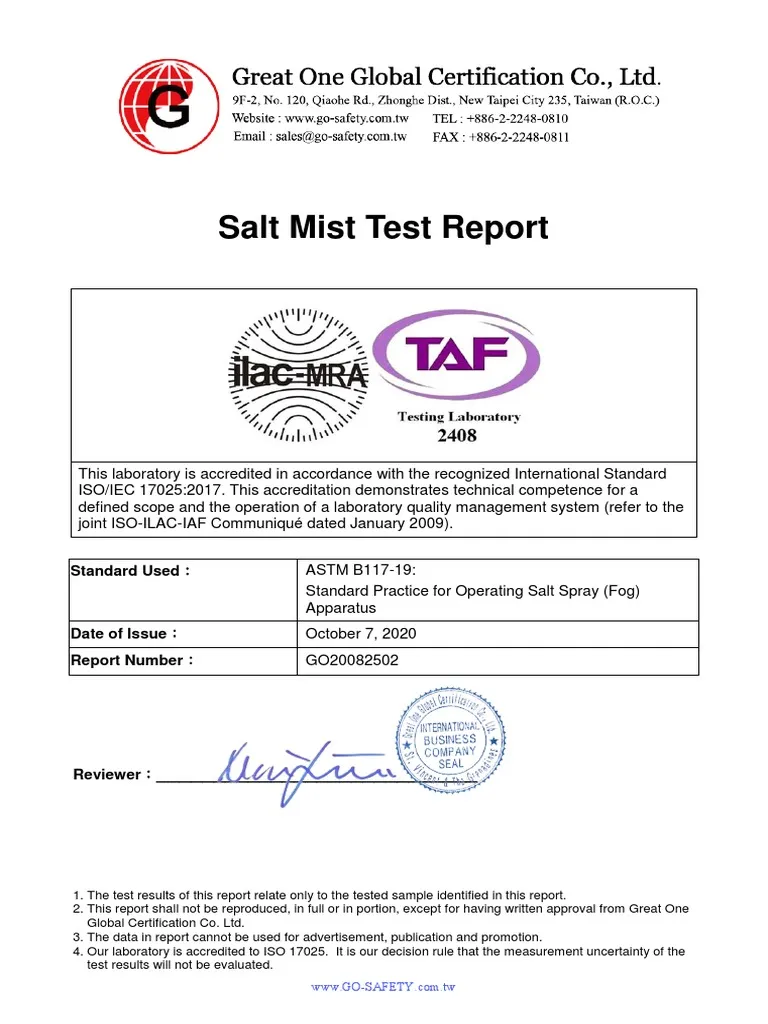 Salt-spray / abrasion testing (specific items)