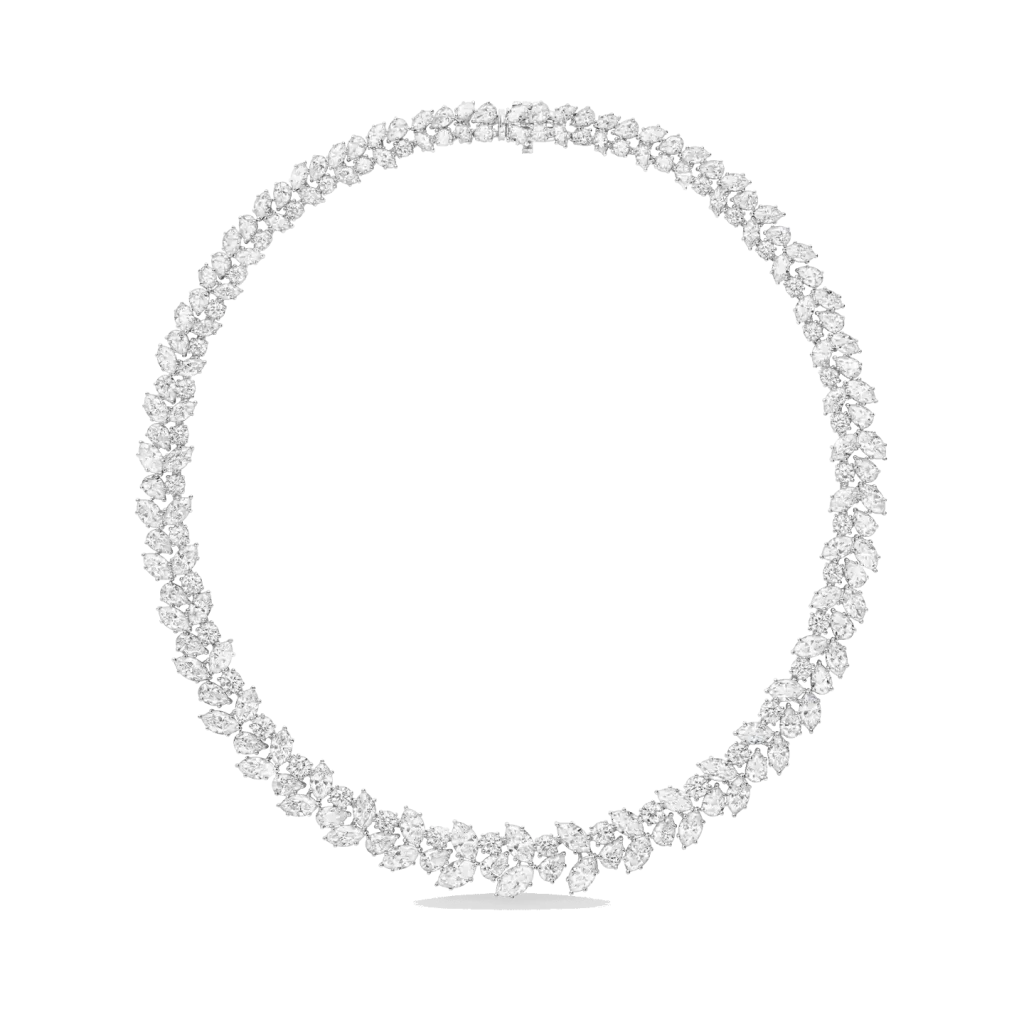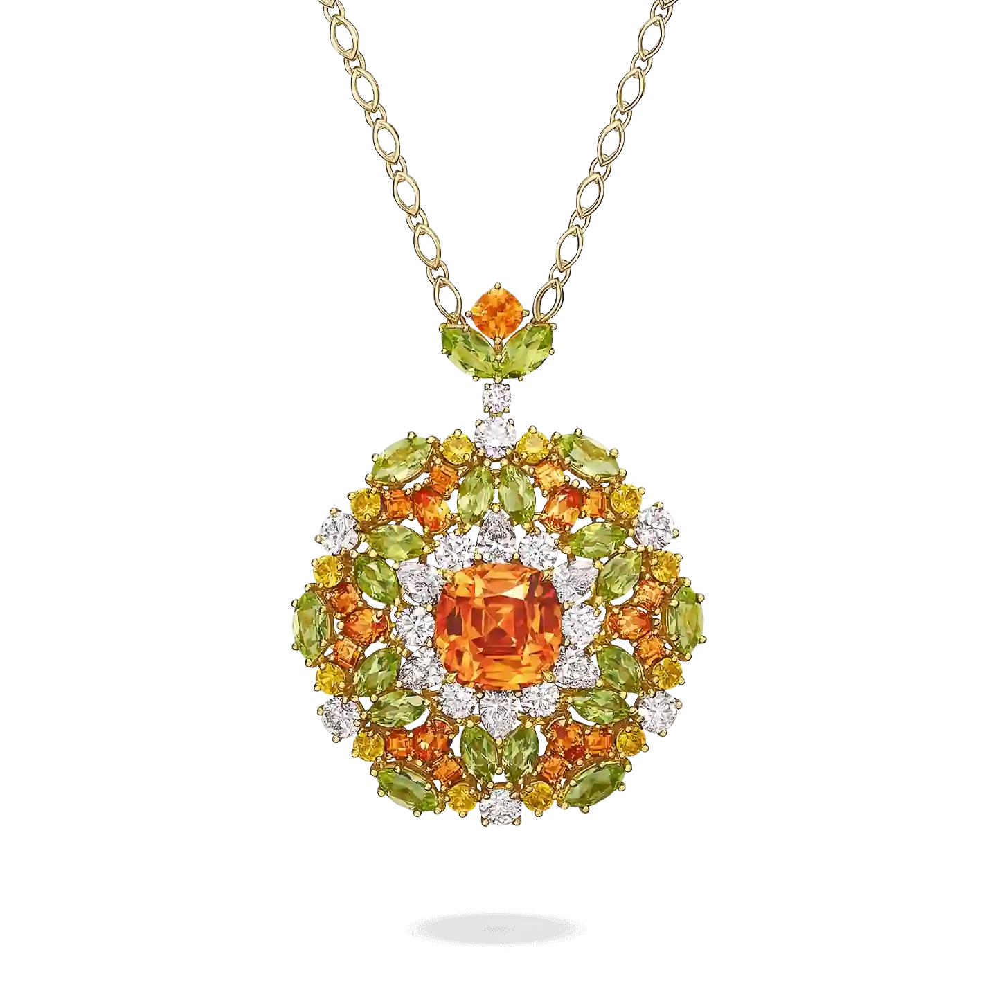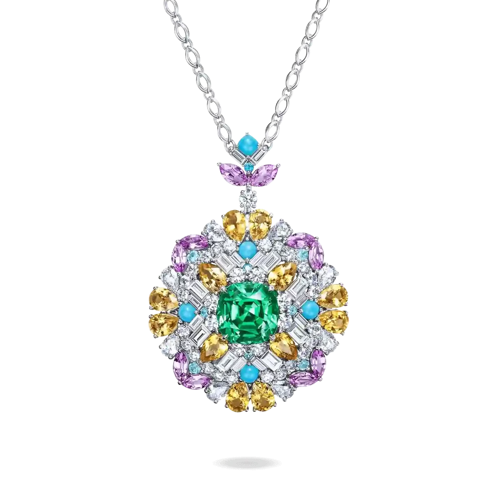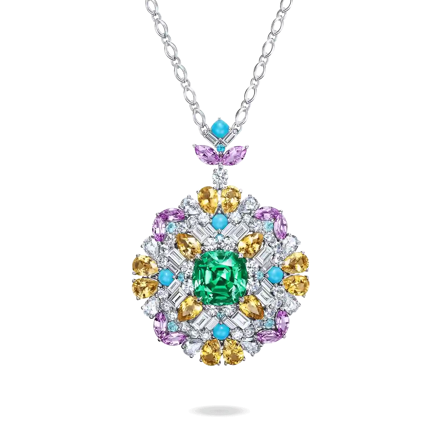 Abili’s diamond pendants, set in platinum or yellow gold, offer a more delicate interpretation of the House’s signature fine jewelry aesthetic.