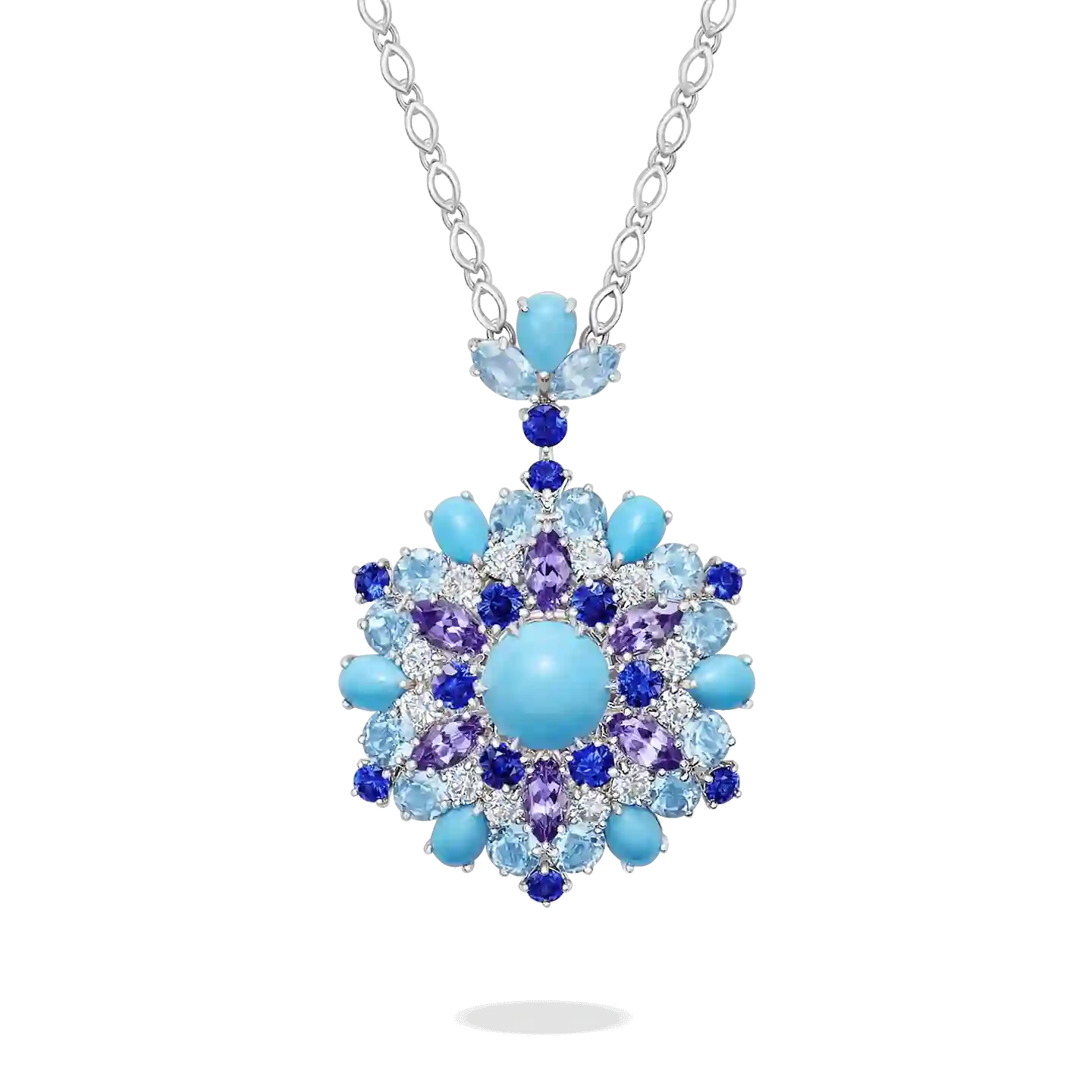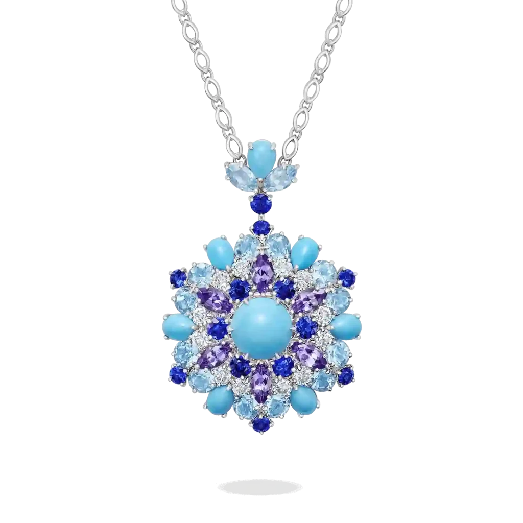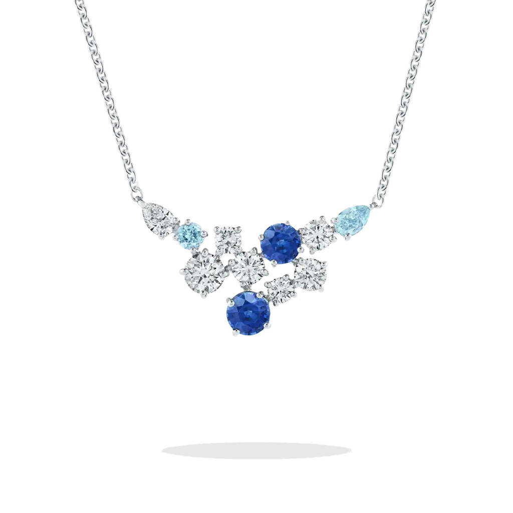 Abili Sparkling Cluster Sapphire, Aquamarine and Diamond Pendant