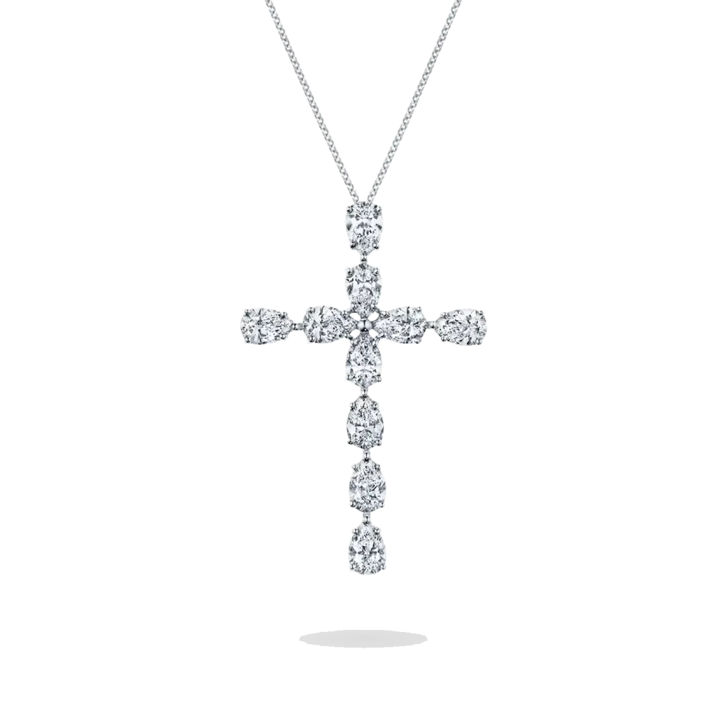 Abili Symbols Pear-Shaped Diamond Cross Pendant